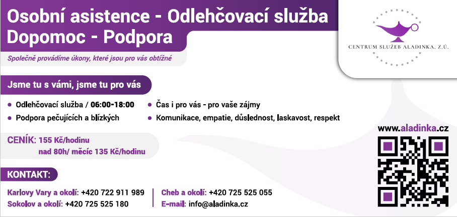 Centrum služeb Aladinka, z. ú. spouští novou odlehčovací službu osobní asistence, která je určena pro ty, kdo potřebují pomoc při obtížných úkonech. Služba je k dispozici každý den od 6:00 do 18:00. Cena je 155 Kč za hodinu, při měsíčním vyčerpání nad 80 hodin je cena snížena na 135 Kč za hodinu. Pro více informací nás můžete kontaktovat na uvedených telefonních číslech nebo e-mailem.