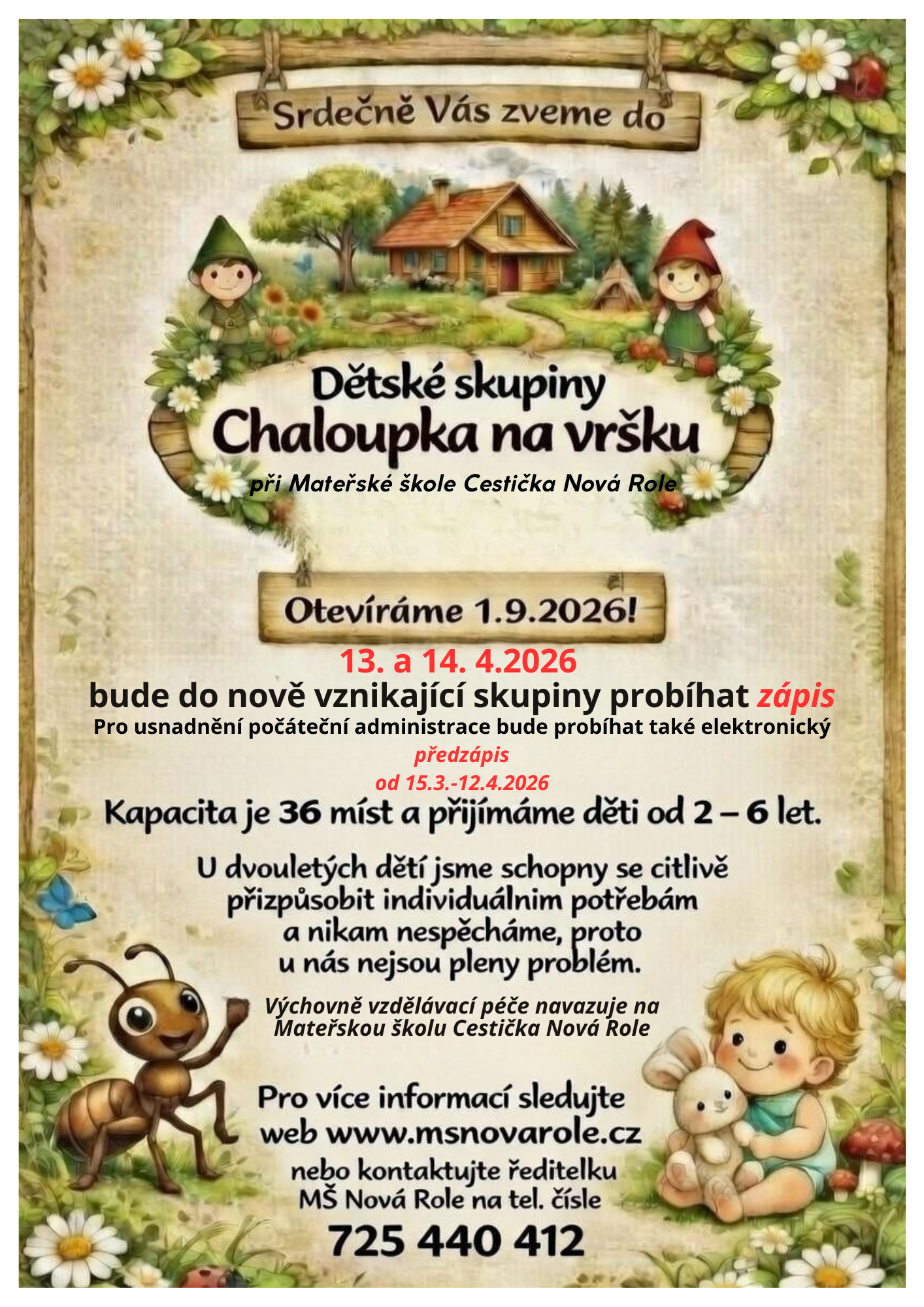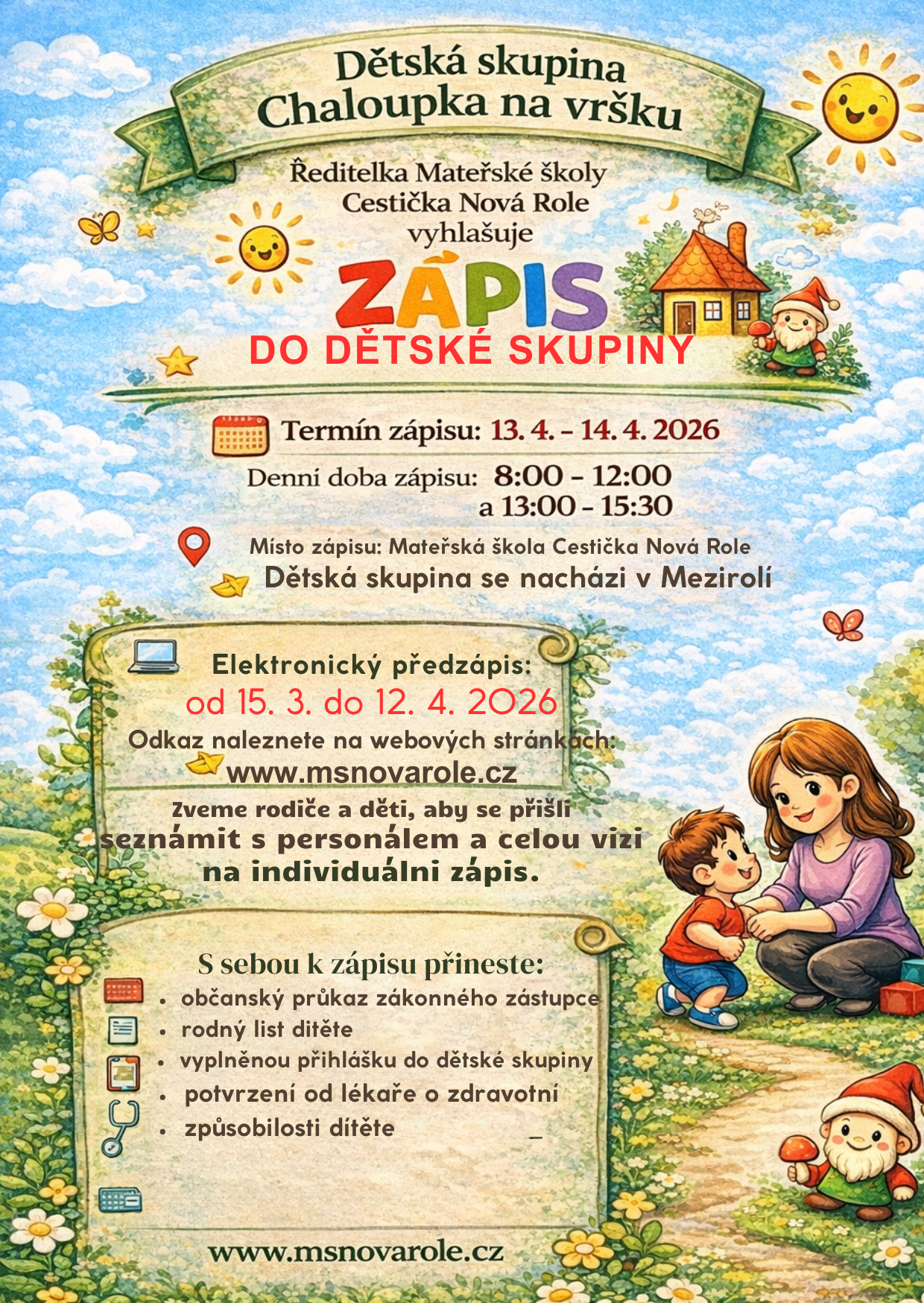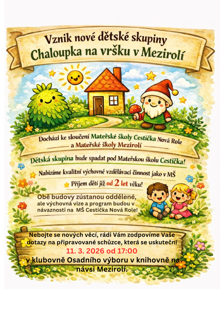V Mezirolí byla založena nová dětská skupina Chaloupka na vršku, která spadá pod Mateřskou školu Cestička. Tato skupina nabídne kvalitní výchovně vzdělávací činnost pro děti již od 2 let věku. Ačkoli obě budovy zůstanou oddělené, výchovná vize a program budou navazovat na MŠ Cestička Nová Role. Tato iniciativa má za cíl poskytnout rodinám v regionu široké možnosti předškolního vzdělávání.